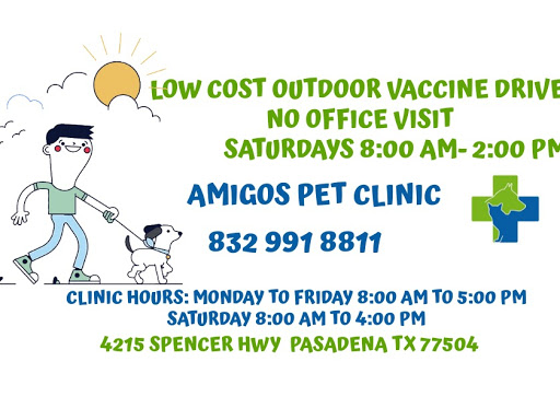 Hospitals Are Open Evenings Weekends Inside Your Local Petco. Amigos Pet Clinic is located at 4215 Spencer Hwy in Pasadena Texas 77504. Low Cost Veterinary Services.